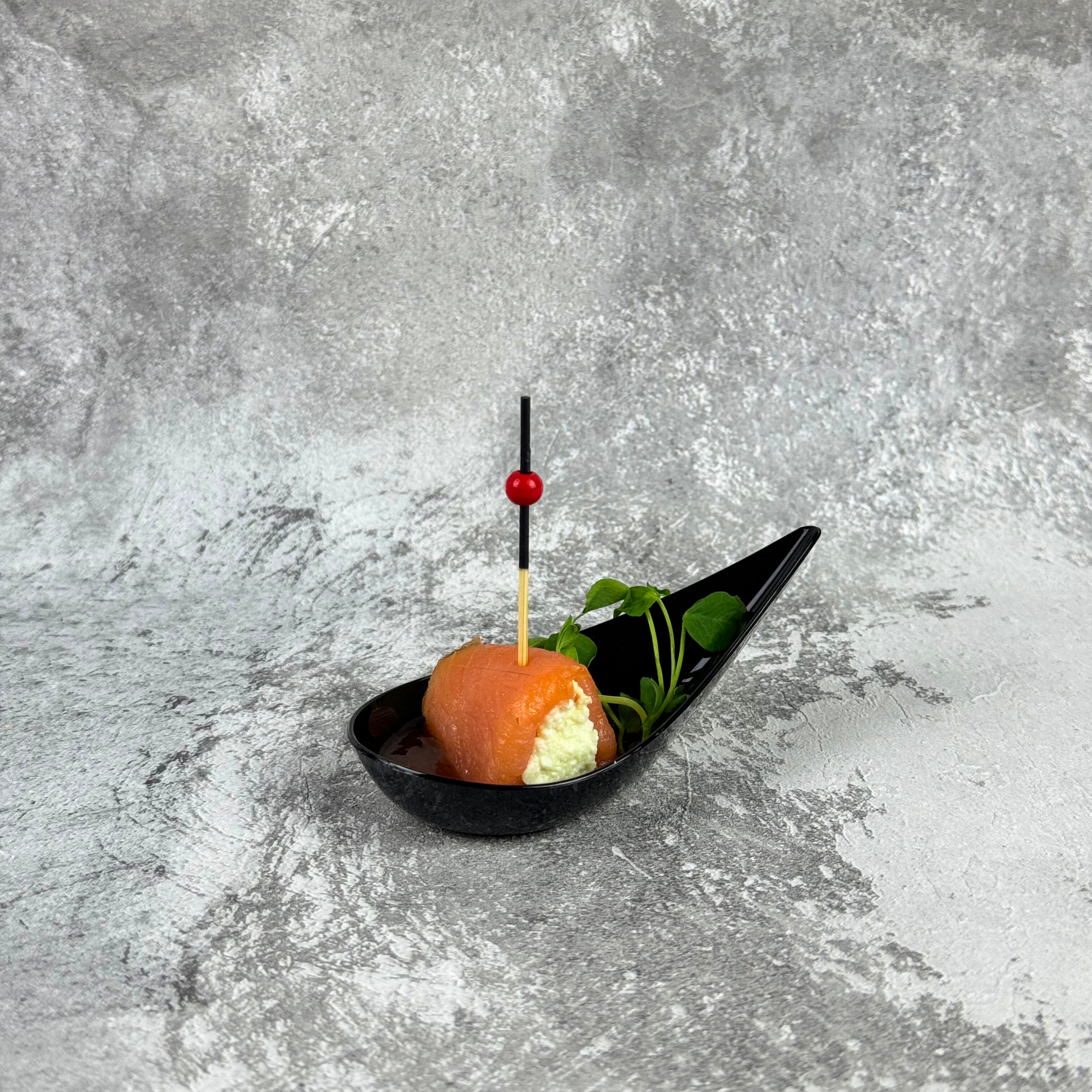 Cygaro z łososia z serkiem philadelphia na chutney paprykowym.