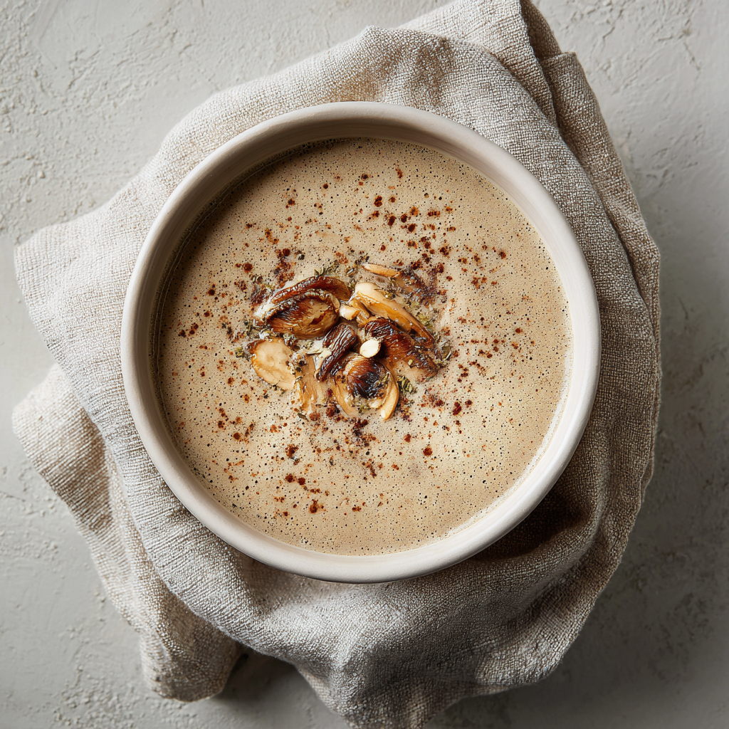 Krem z leśnych grzybów z groszkiem ptysiowym